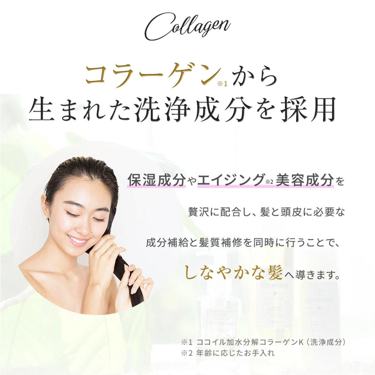 コラーゲンをはじめとするスキンケア成分94%配合!まるで美容液のようなシャンプーです。