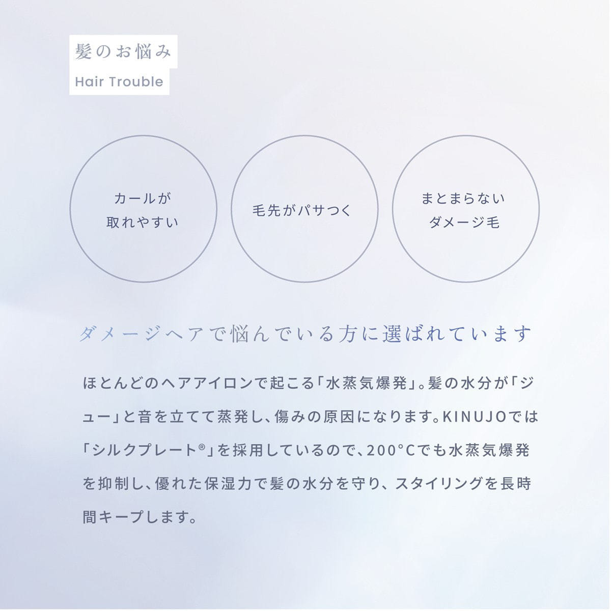 独自開発のシルクプレートは、200℃に温めた状態で水分を吹きかけても瞬間蒸発せず髪の水分を守ることができます。