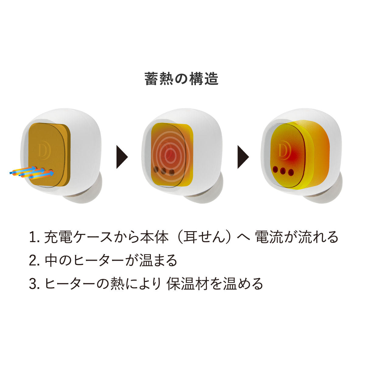 イヤーピースの先端部分ではなく本体(耳せん)の保温材が温まるので、さまざまな神経が集まる耳甲介腔へアプローチ。