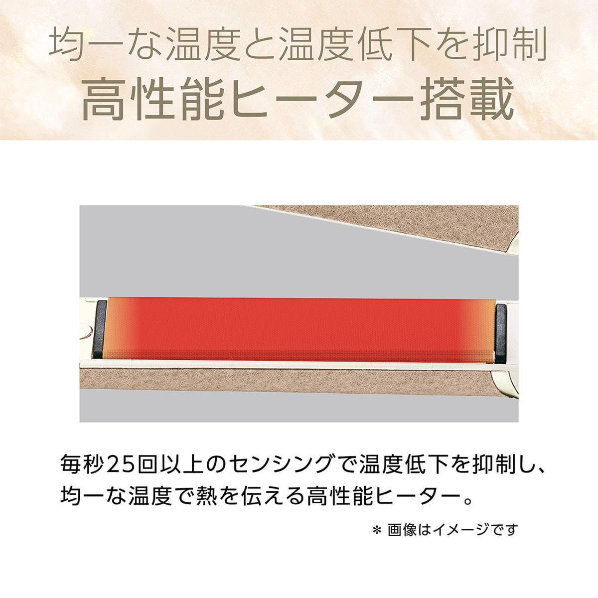 プレート素材が水分の蒸発を抑えてうるおいをキープ。熱ダメージから髪を守ります。